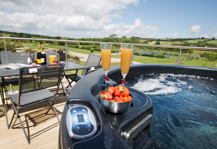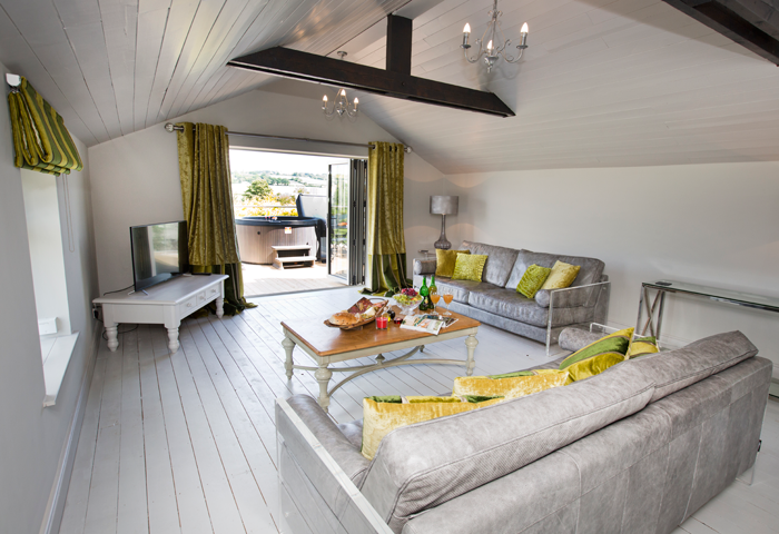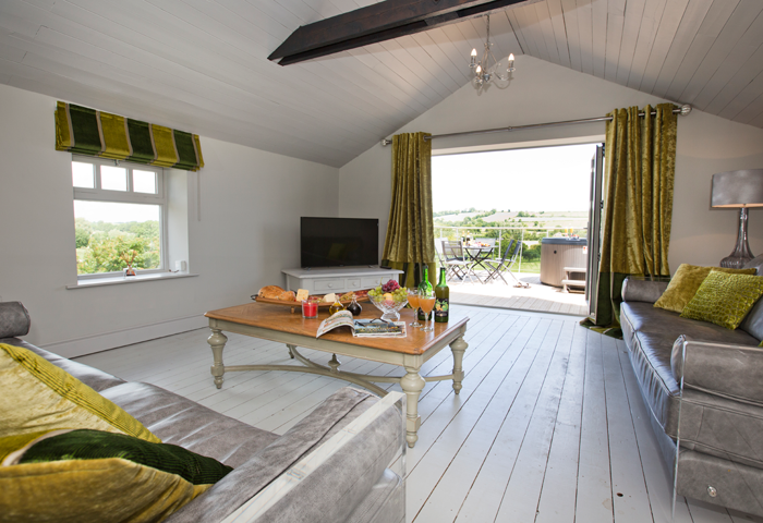 Clover Barn has 3 gorgeous en-suite bedrooms each individually styled with feature beds and wet room bathrooms. In the heart of the cottage is a large second storey sitting room with balcony and outside hot tub with fabulous views over the surrounding countryside. The open plan sitting room provides a contemporary setting for relaxing. The cottage backs onto an enclosed and peaceful courtyard with comfortable seating, trees decorated with white lights, beautiful water garden and field views. The interior of the cottage is a blend of traditional features and contemporary minimalism creating a stylish but ultimately luxurious holiday cottage. The cottage has its own electric hot tub ideal for any celebration.